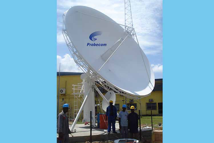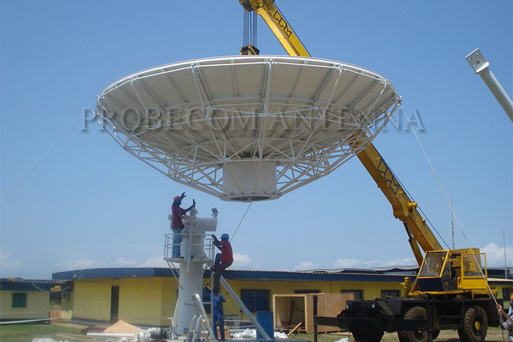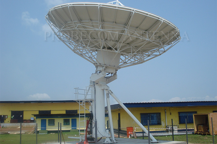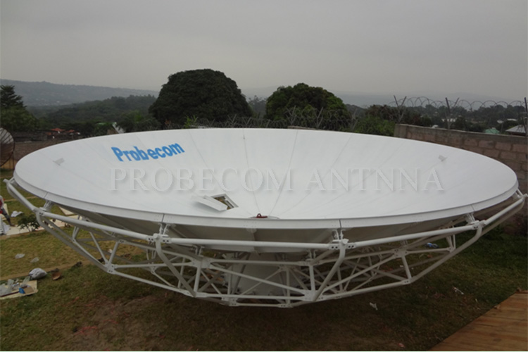 Probecom supplies 7.3 meter Satellite receive only antennas meets data receive and TV requirement. Probecom TVRO antenna is made of high accuracy stretch-formed aluminum panel with stable structure. The TVRO antenna systems with satisfactory performance of high gain, low side lobe and reliable operation, easy to operate and maintenance.