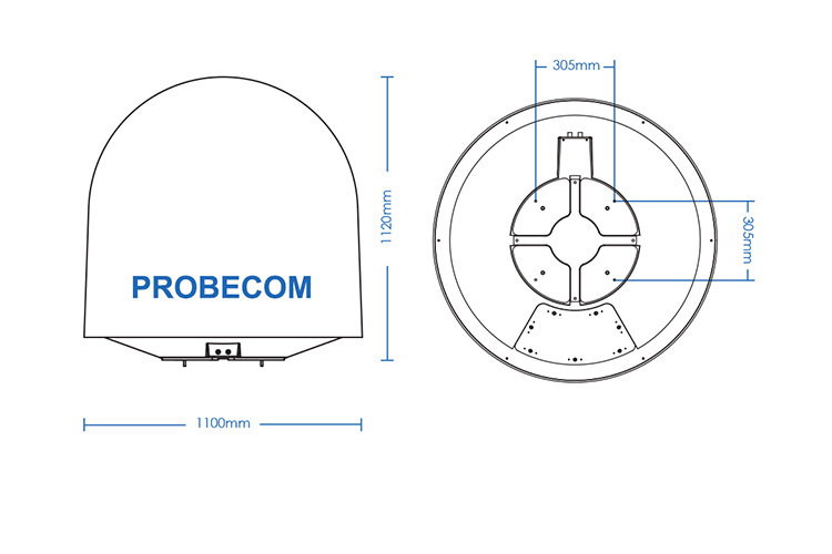 Probecom newly developed 80cm Ku band maritime antenna, applies to Internet access, Real-time Data Monitoring, VOIP, Video conference, guidance of remote maintenance fleet management, big data platform; Standard VSAT, 80cm Dish Diameter , Ku band, 3 Axis Stabilized and 4-Axis Tracking